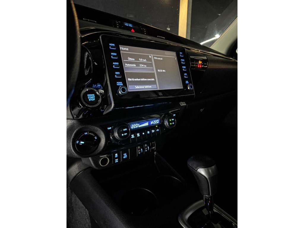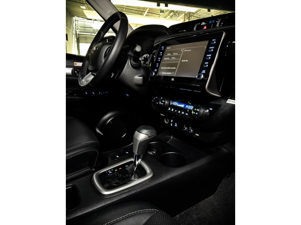 Hilux SRX turbo Diesel 4x4 automática 2022 Ano/Modelo: 2022/2022 Combusti´vel: Diesel Motor 2.8 Turbo 204cv Câmbio Automático 6 Marchas Faróis de LED Bancos de couro Alerta de colisão Frenagem automática de emergência Alerta de mudança de faixa Airbag Frontais, laterais e Cortina Espelhamento de celular sem cabo Multimídia Informações via app Ar condicionado digital Sistema de som JBL Botão Start stop volante multifuncional Apenas 47mil km rodados Garantia de Fábrica R$249.990,00